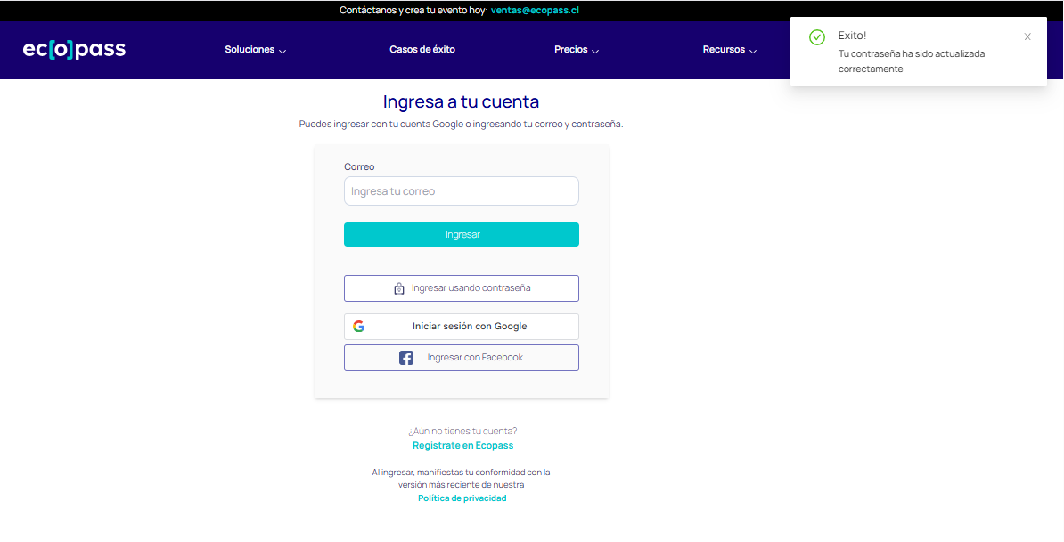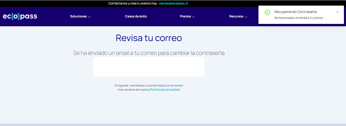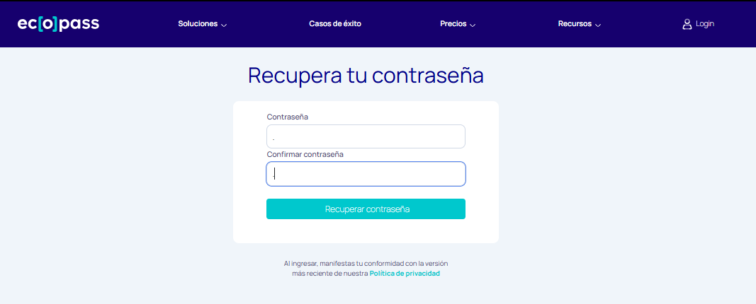 - Ingresa tu nueva contraseña y haz clic en el botón "Recuperar contraseña" y ya podras ingresar usando tu nueva contraña.