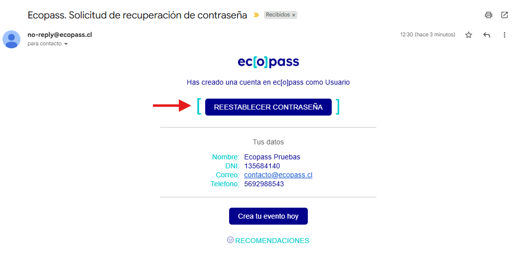 - Recibirás un correo con un enlace para restablecer tu contraseña.