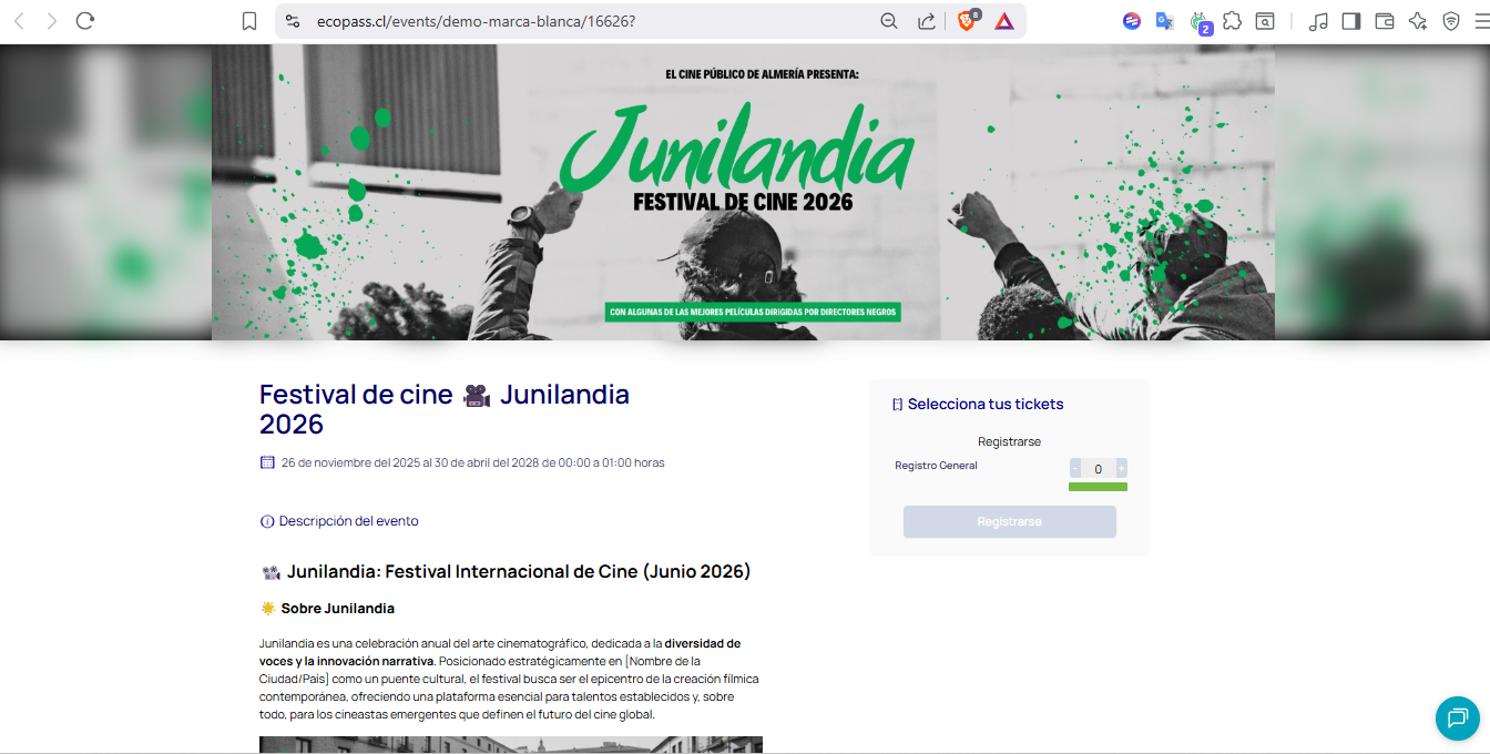 La Marca Blanca de Ecopass consiste en eliminar la visibilidad de la marca Ecopass durante la experiencia del asistente.